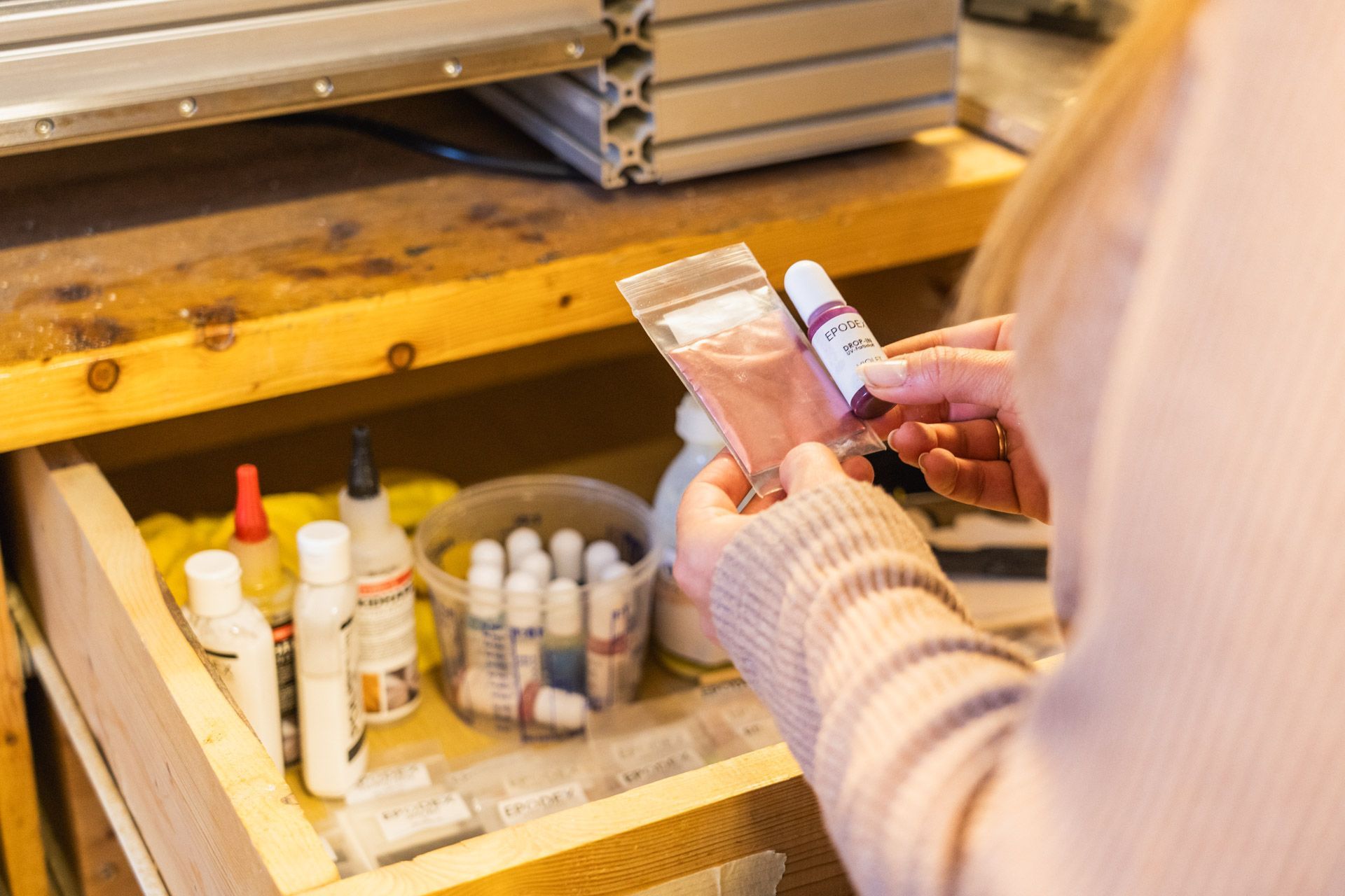 Im Hintergrund (und manchmal mittendrin) sorgt Sabrina Wieser-Bichler dafür, dass alles rund laft. Sie kümmert sich ums Marketing, Zahlen und hat das kreative Feingefühl – von Entwürfen für Kundenaufträge bis hin zu neuen Designideen.